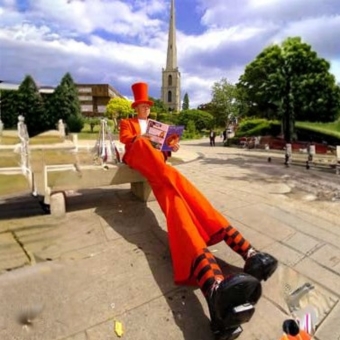 Walkabout interactive juggler on the ground or as a 9 foot stilt walker. Riding around on a Penny Farthing, Lunibike, unicycle or riding high on my fabulous Stilt bike. The stilt bike enables me to perform over a huge area as a stilt cyclist and walkabout juggling stilt walker. I also perform with two fine chaps Jem and Mark aka The Dapper Chaps and The Comedy Jugglers including the UK’s original stilt bike trio!