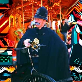 Character walkabout as a comedy Victorian policeman, Pirate, Sailor, Jester and more. Comedy juggling and diabolo shows with diabolo, balls, clubs, knives, machetes, fire torches and rubber chickens! Including a big finale with a large stack of crates with me on the top juggling something dangerous. Fire torches and beautiful glow equipment for meet and greet and shows with impact.