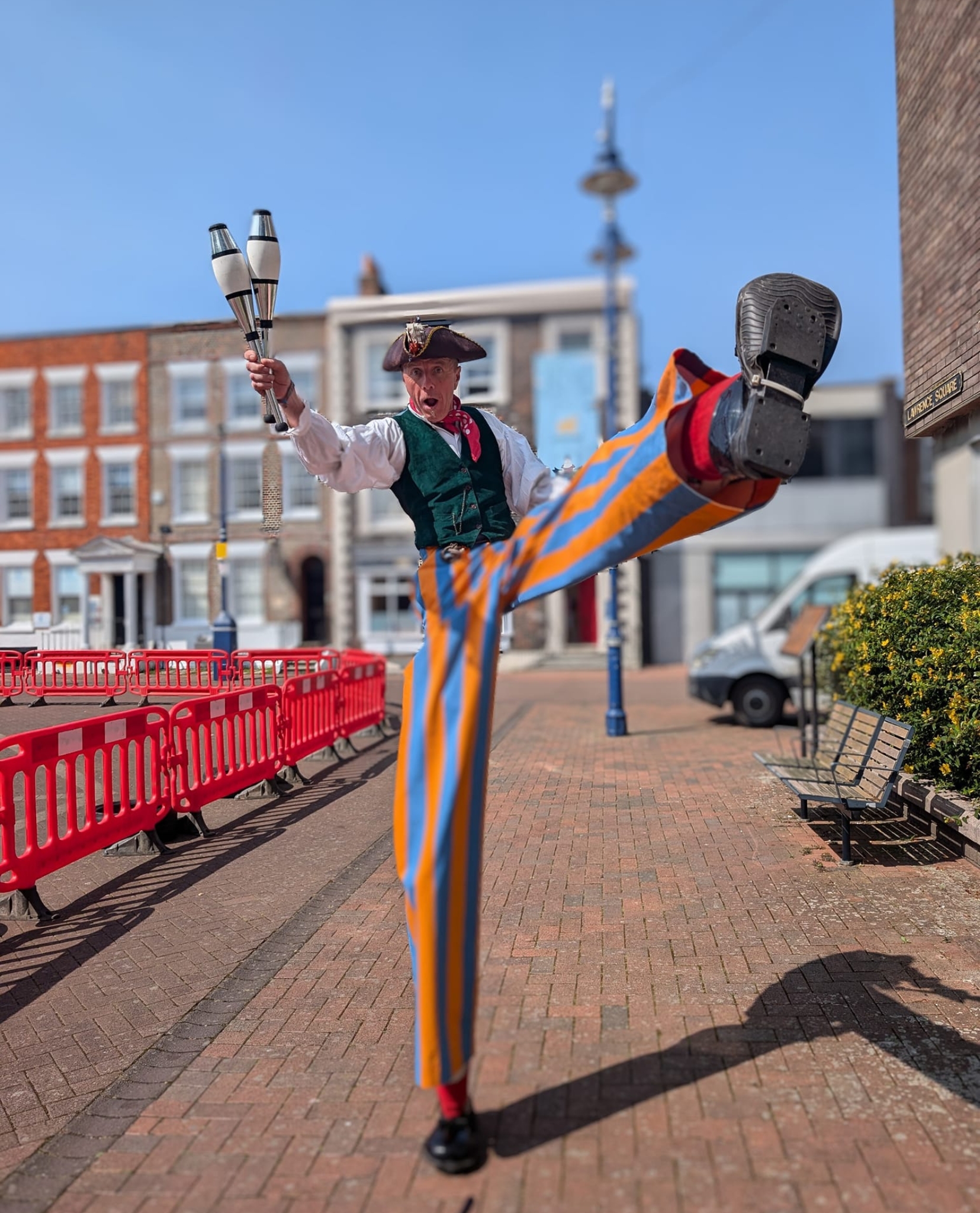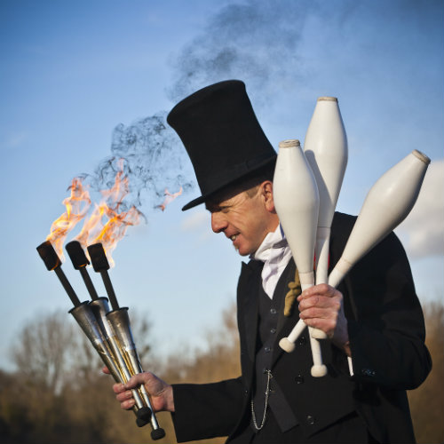 I perform comedy juggling and diabolo shows, glow and fire shows, displays, present walkabout entertainment as a Juggler, Juggling Stilt Walker and as many different characters from Clown and Jester to Chef and Pirate as well as a Dapper Victorian Juggling Gentleman and Old English Bobby.